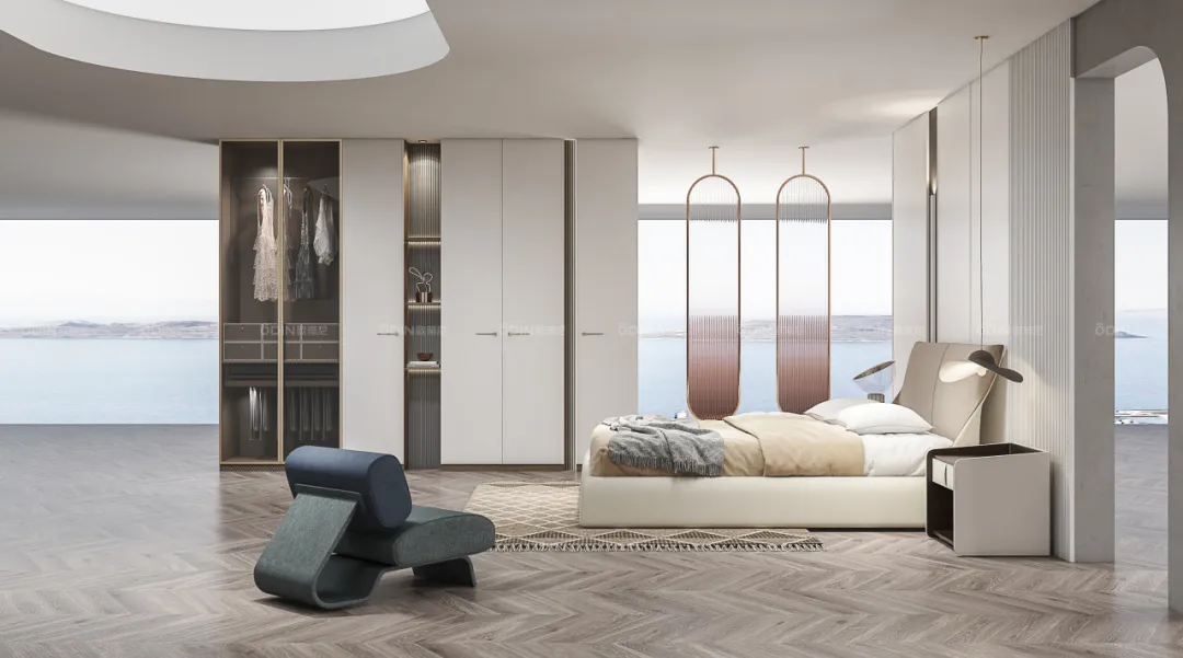 - 空間最大化:去除傳統(tǒng)衣柜頂部的積灰空間,一門(mén)到頂?shù)脑O(shè)計(jì)不僅增加了儲(chǔ)物容量,還使整體線條更加流暢,視覺(jué)上拉長(zhǎng)空間高度,顯得房間更加開(kāi)闊。