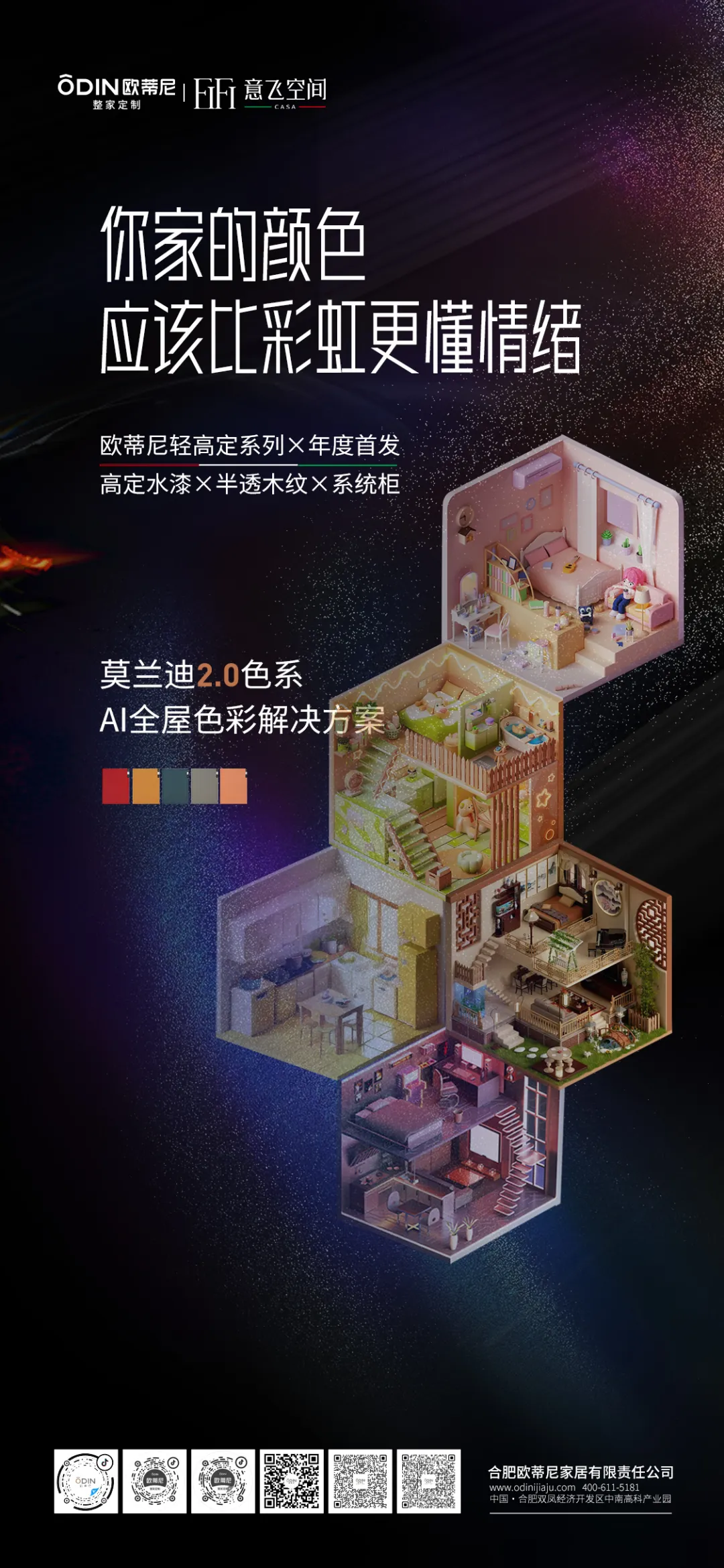為了讓色彩搭配更加輕松,歐蒂尼還推出了AI全屋色彩解決方案。只需上傳戶型圖,AI算法便能迅速生成專屬配色方案,讓墻面、柜體、軟裝色彩無(wú)縫銜接,打造出既和諧又個(gè)性化的家居空間。在歐蒂尼的色彩哲學(xué)里,家不僅是一個(gè)居住的空間,更是一幅流動(dòng)的藝術(shù)畫(huà)卷。