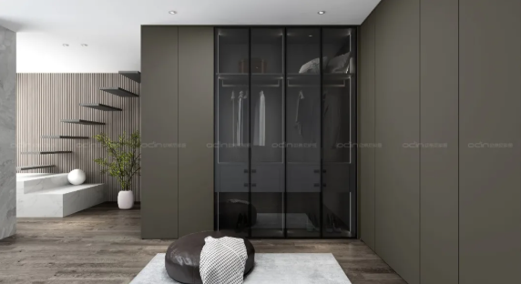 通頂落地式衣柜,頂面與房頂齊平,底部與地面無縫連接,充分利用有限的空間面積,讓收納功能達到最大化。