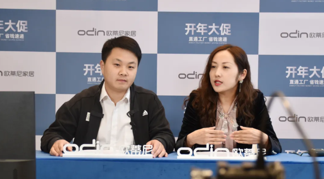 此次直播特邀歐蒂尼集團(tuán)董事長(zhǎng)王光有先生、副總經(jīng)理兼營(yíng)銷總監(jiān)張明先生親臨現(xiàn)場(chǎng),與大家會(huì)面,回顧此次活動(dòng)并作分享總結(jié);現(xiàn)場(chǎng)也遠(yuǎn)程連線歐蒂尼下塘工廠、萬華禾香板廠家以及加盟商,切實(shí)為廣大消費(fèi)者了解禾香板的加工應(yīng)用,了解我們的板材生產(chǎn)工藝和生產(chǎn)過程以及終端門店的活動(dòng)情況。
